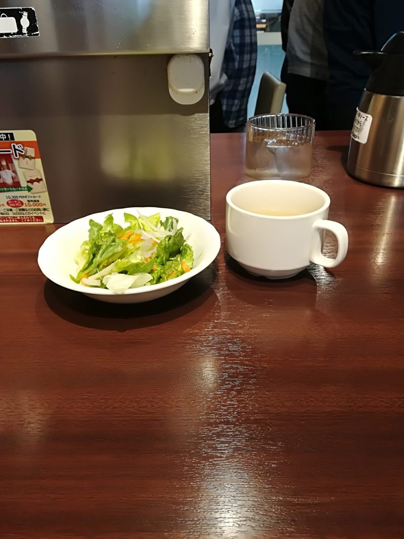 サラダとスープはすぐにきて、肉が来るまで10分ほど待ちます