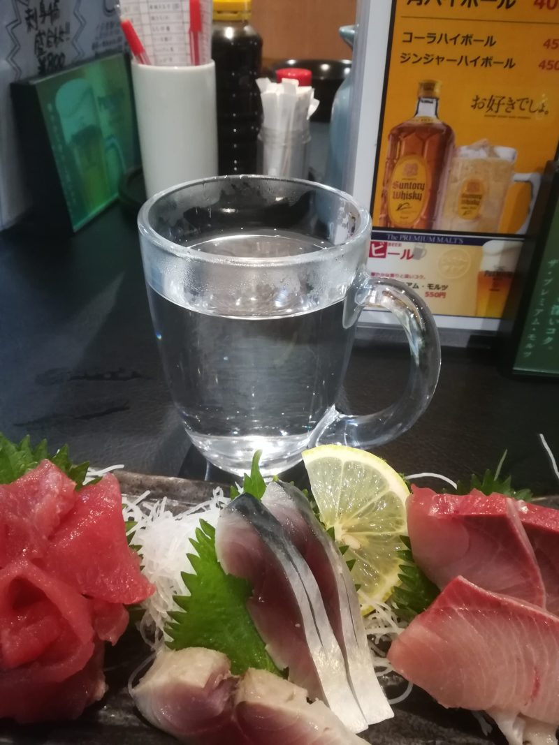 まだ寒いので焼酎をお湯割りで