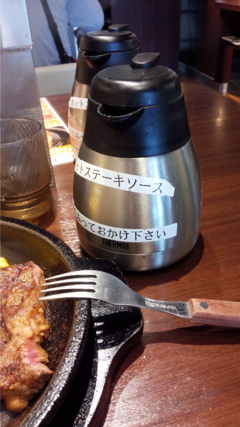 これをかけると肉汁が飛び散るので、最初に渡される紙エプロンは絶対やった方がいいですね