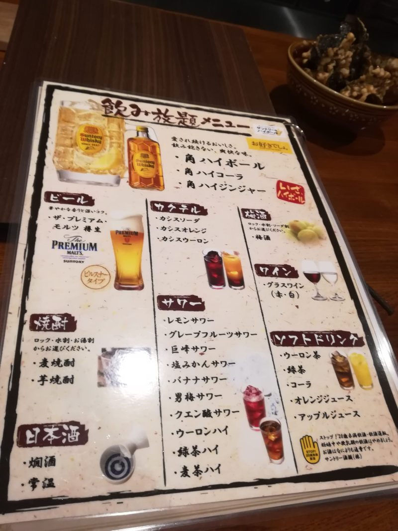 フードを1人2品頼めば1500円で2時間飲み放題とのこと!