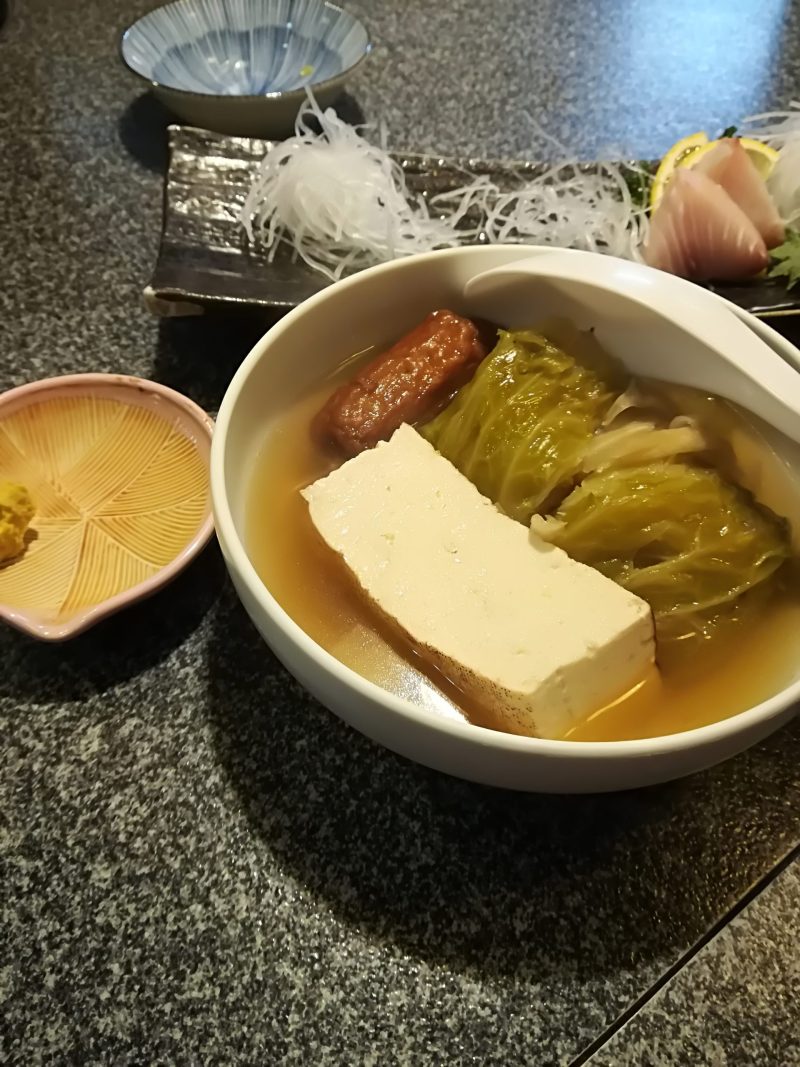 刺身もおでんも美味しいのですが、飲んでいるものがビール、お茶ハイなどの冷たい飲み物で・・・