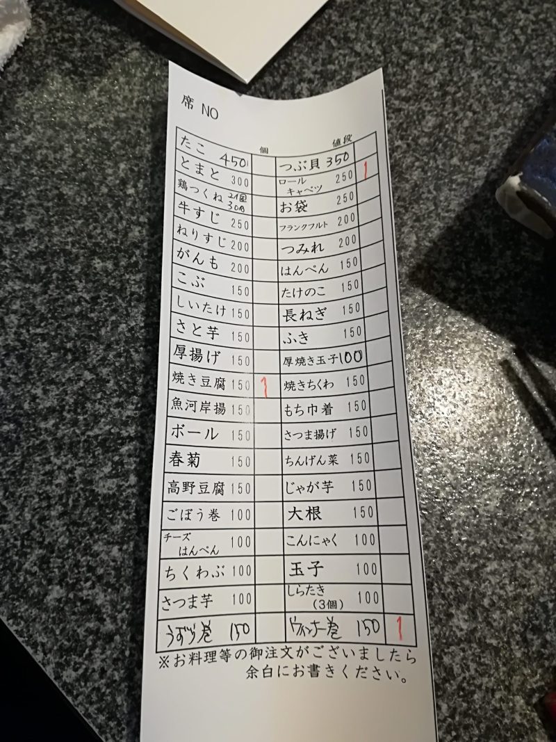 せっかくおでん鍋が中央にドーンとあるので頼みたいですよね
