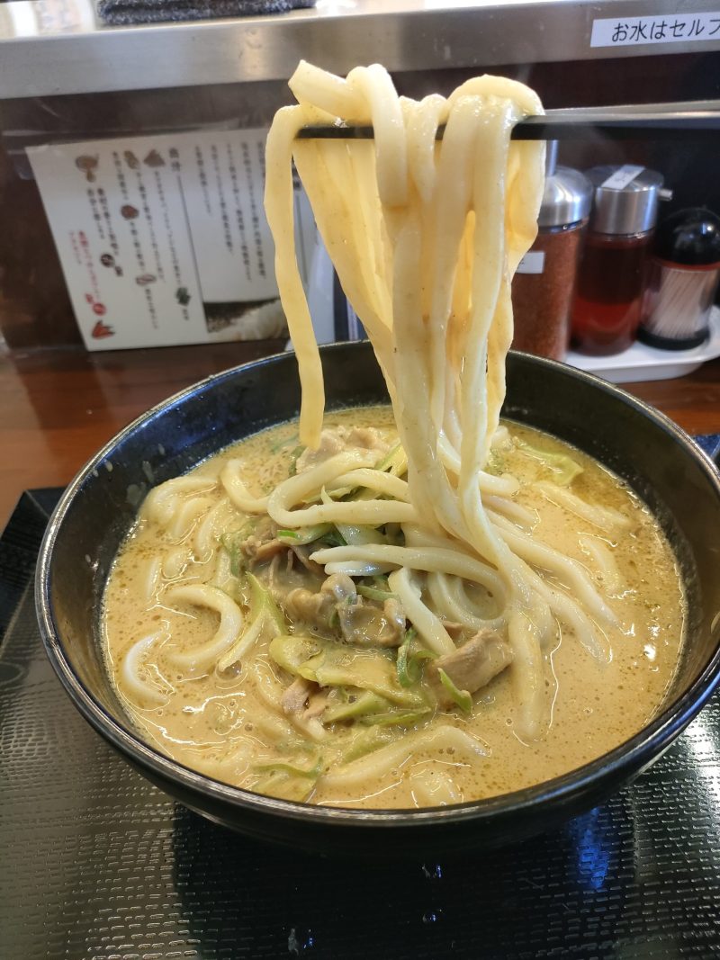 もっとスパイシーだとご飯にも合うと思うけど、これくらいのカレーうどんなら二日酔いとかで食べたくなりそうな優しい味でした