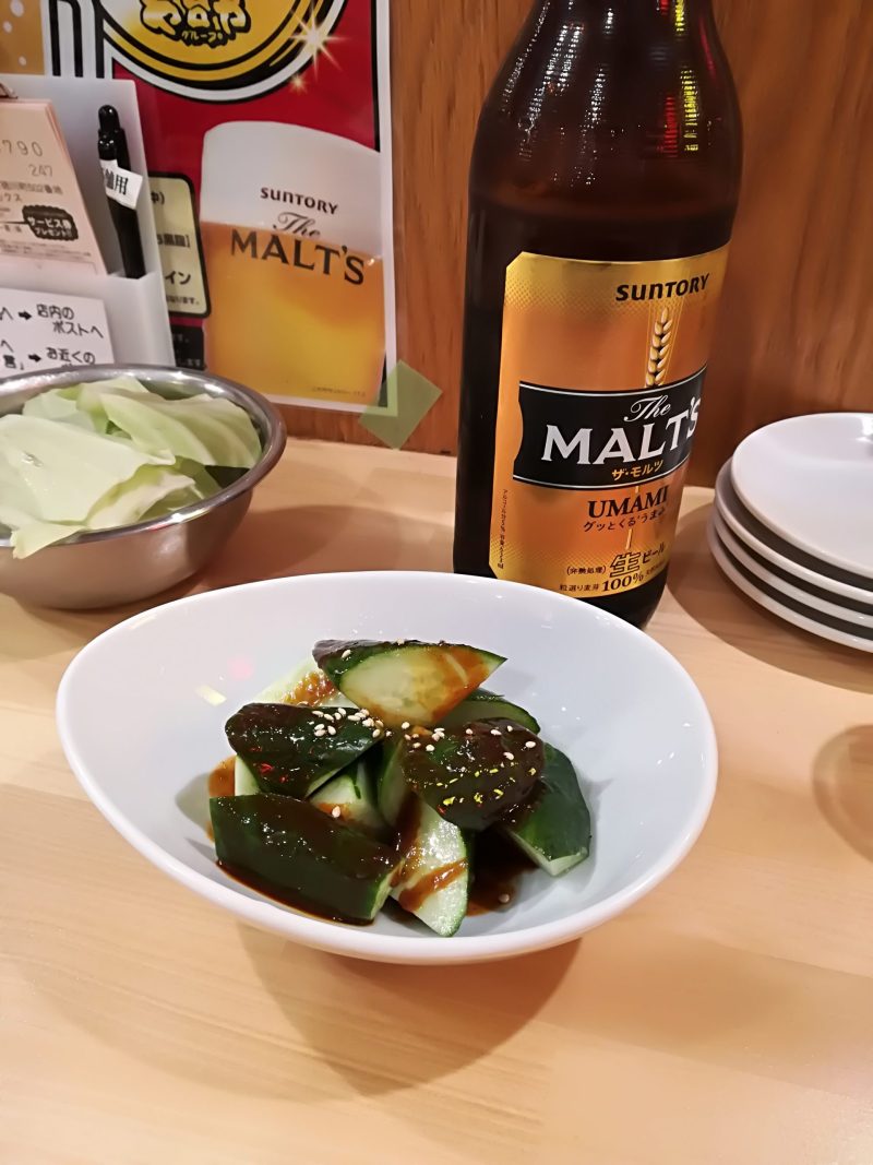 きゅうりもまったく味のついていない生のきゅうりにただキムチのたれらしきものをかけただけ・・・10秒で出来そうなメニューです