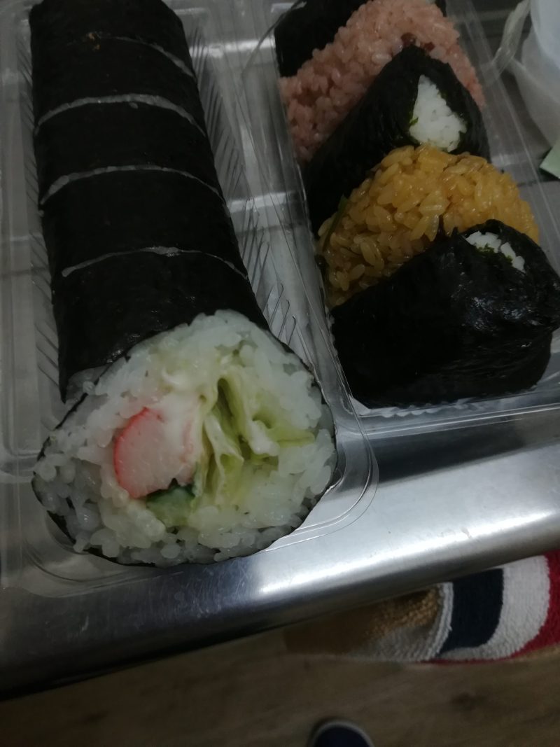おにぎりは、最近じかまきおにぎりが好きで、コンビニでも3個セットとかを買うのですが、ここのもコンビニの直巻きおにぎりと同じ味がしました