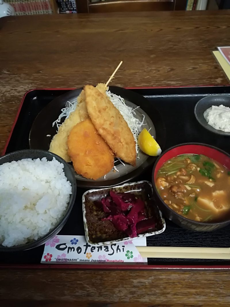白身魚のフライはサクサクでタルタルフライに合いますね♪コロッケはじゃがいもがたくさん入っているタイプですね。鳥串カツはボリュームたっぷりでお肉もジューシーで美味しかったです