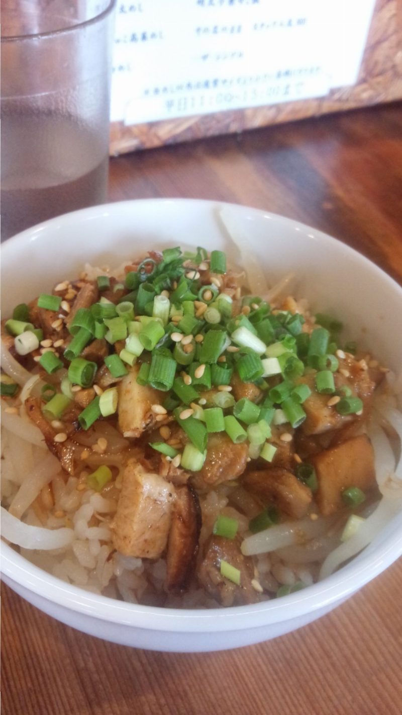 最初に来たのは肉めし。小さめですが、これくらいじゃないとつけ麺食べきれません(^_^;)
