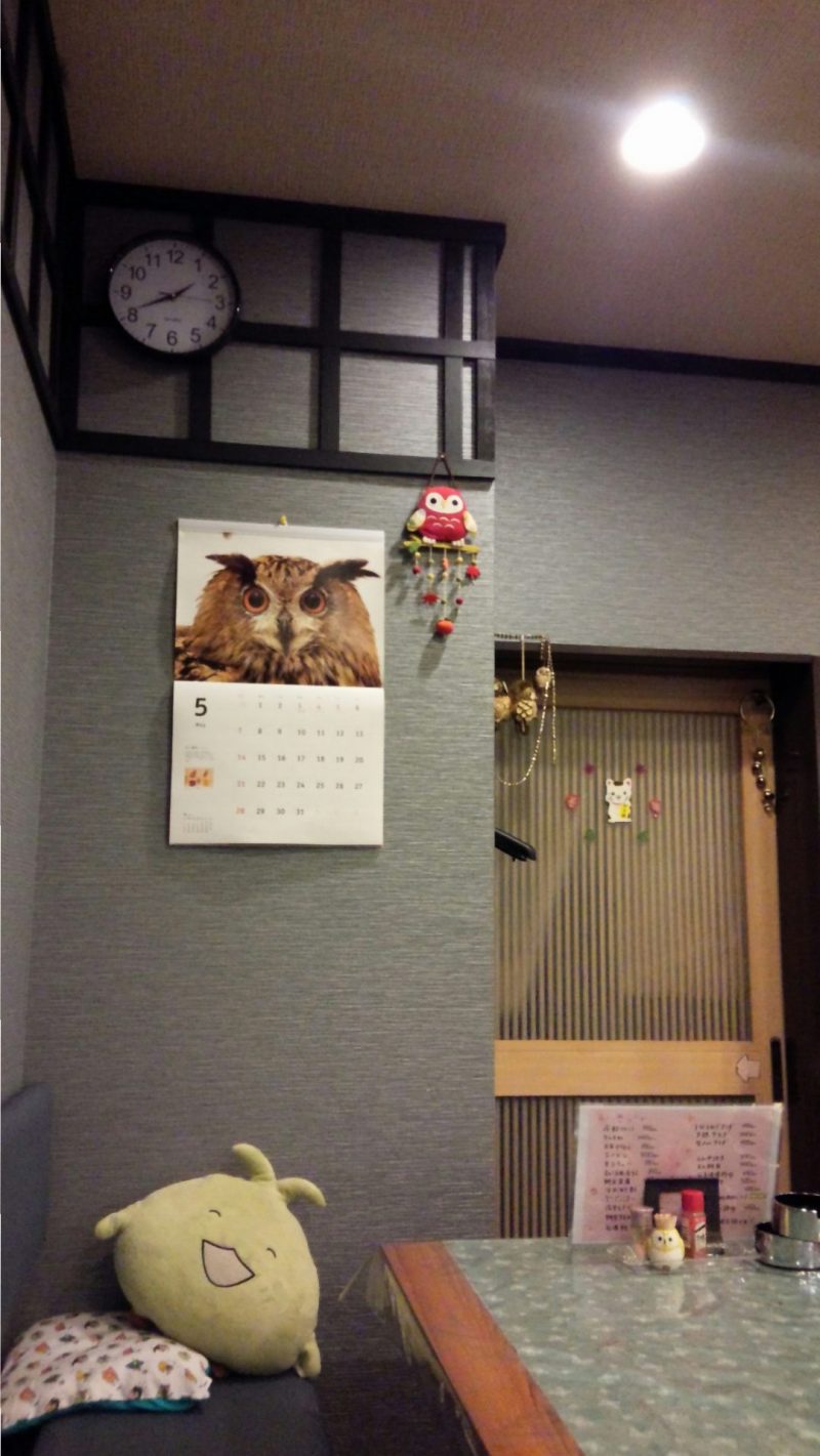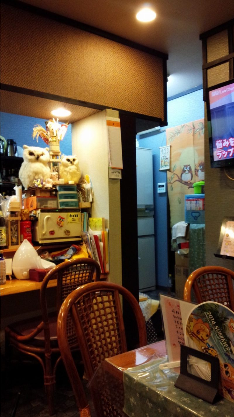 いくつかある候補の中で迷っているときに座布団を買いに行って、ふくろうの座布団がたくさんあって、それを買って店名もふくろうにした、とのことでした