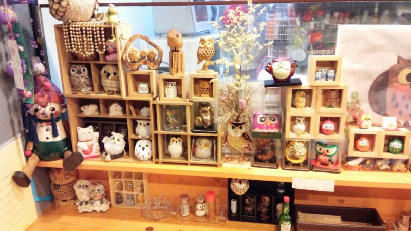 店内ふくろうグッズがたくさん!!凄いですね~うちもそうしたほうがいいのかな・・・