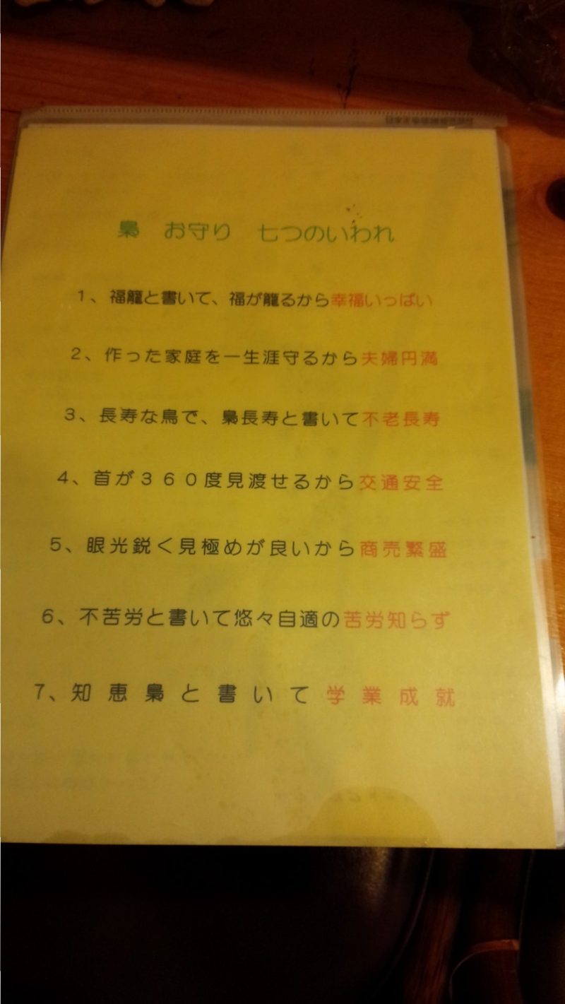 ちなみにふくろうの由来を聞くと