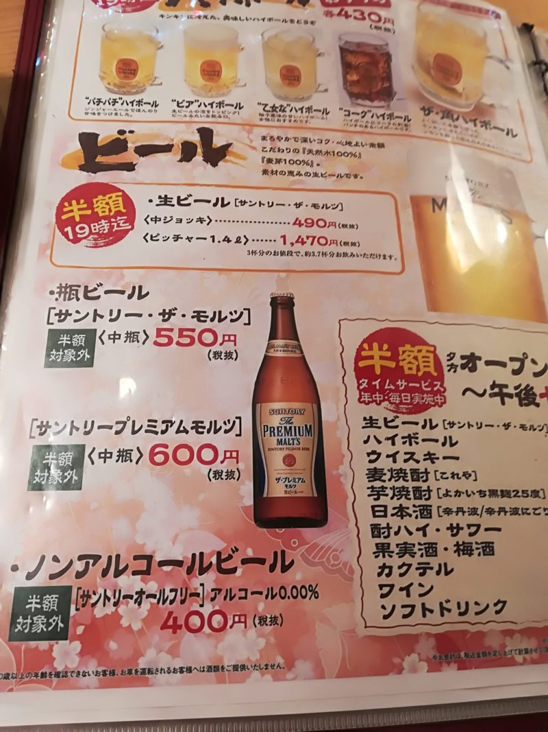 「これや」と同じチェーンのようですが瓶ビールの価格はこちらの方がだいぶ高いですね