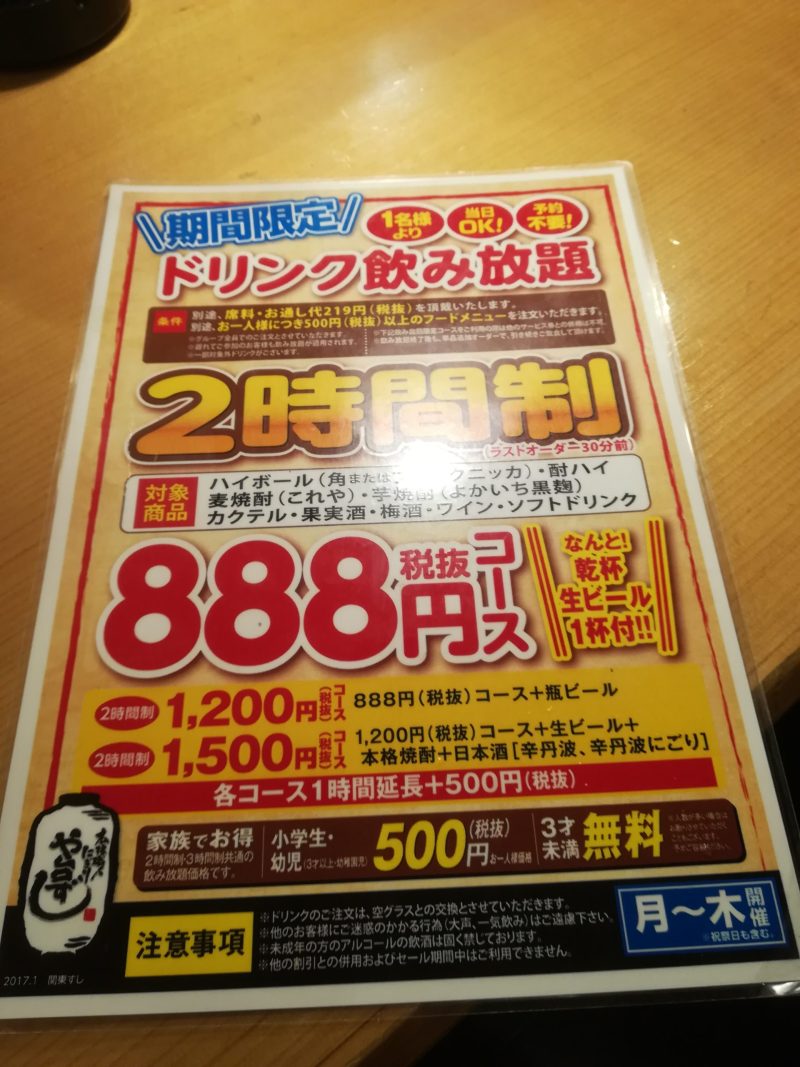 お刺身が食べられて飲み放題(月~木)を付ければ結構安く食べられるんだなーと。うんうん、いいですね