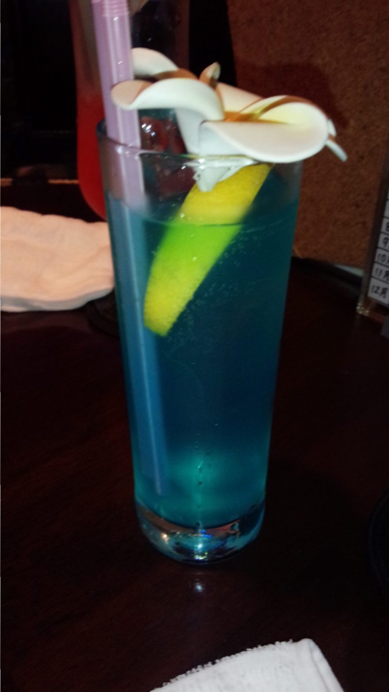 オリジナルカクテルの「青」も頼んだりで・・・