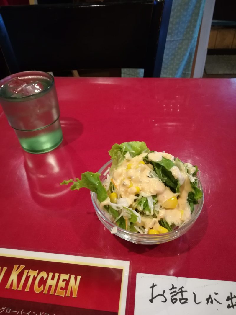 カレー屋さんは最初にサラダが出てきて、これを食べてカレーを待ちます