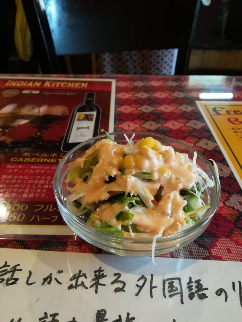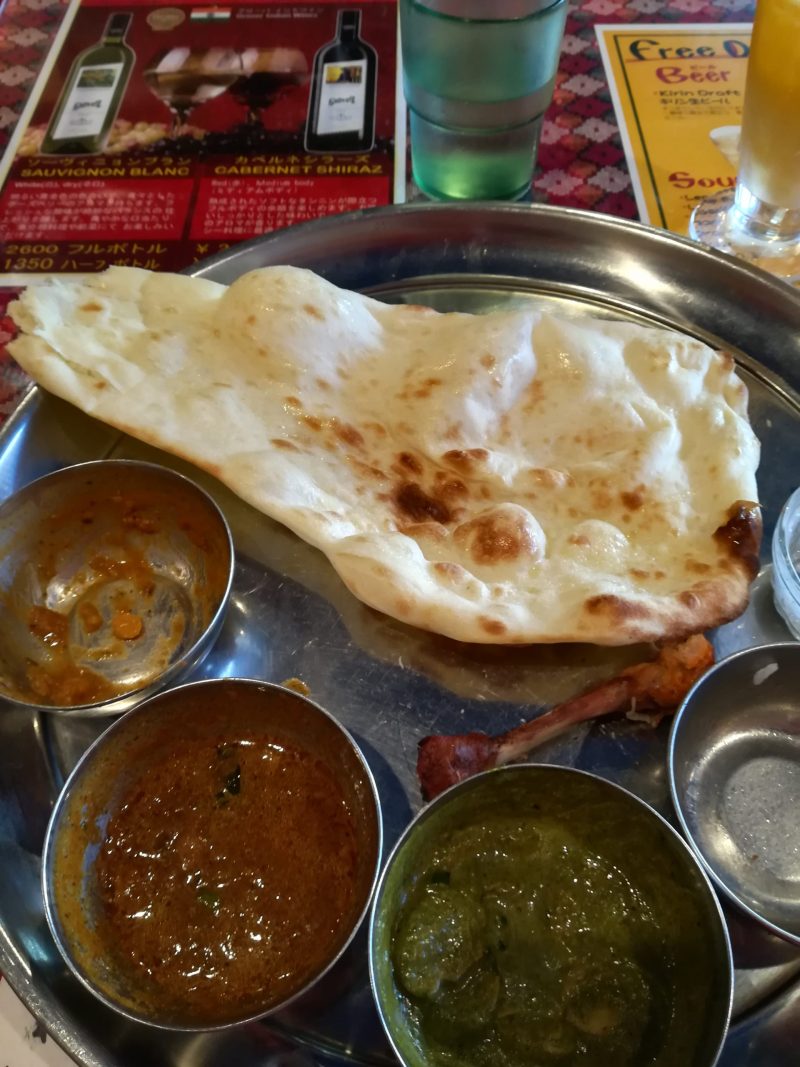まわりの方が体がごっつい男性4人で立て続けに「ナン おかわり」「ハーフナン おかわり」と言っていたので頑張ってまねしてみました