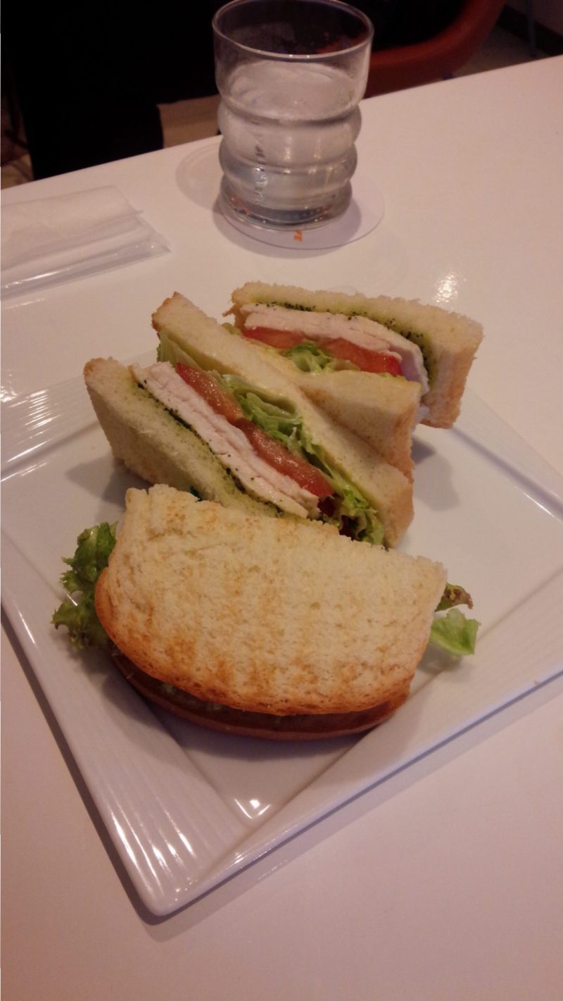 サンドイッチ、パスタ(フルーツトマトとベーコン)、ドリアです