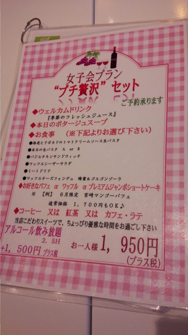 なんと1700円するパフェが女子会プランにするとメインなど色々ついてきます
