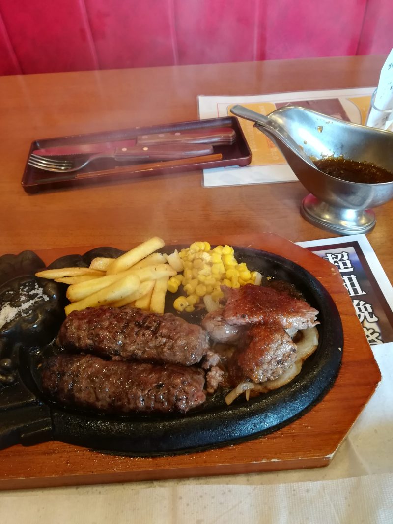 右のカットステーキも柔らかくて美味しかったです。食べログの別の人の口コミでは噛めないほど固い!とあってビビっていたのですが、なんならハンバーグより柔らかいんじゃないかって言うくらい柔らかいステーキでした