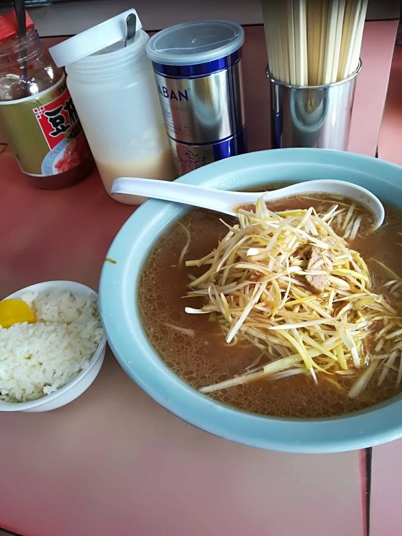 先客が4名ほど。みんな何食べてるかな~と見ると全員のラーメンの上にネギがのっているのでネギラーメン?ネギ味噌?ここはラーメンがとても安いのですが、素ラーメンという感じで具がほとんどないので、皆さん好きなものをトッピングする感じです