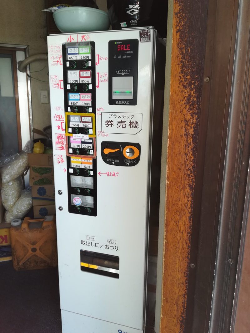 ちなみに、貼り紙があり「前に6人くらいになったら順番に店内の券売機で券を購入してください」というようなことが書かれています