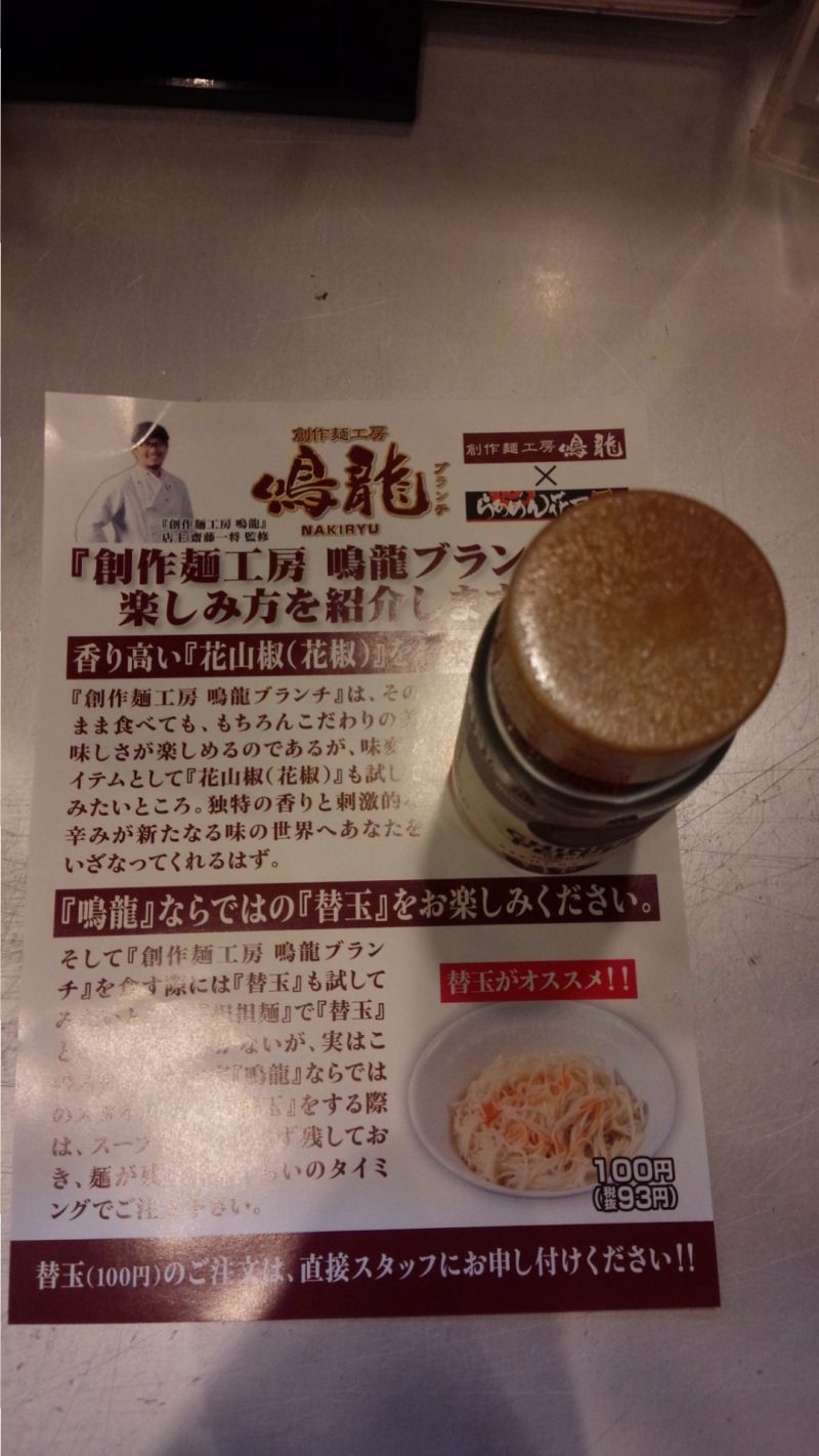 ラーメンが来るまでに花山椒とチラシが来たので読んで待っています
