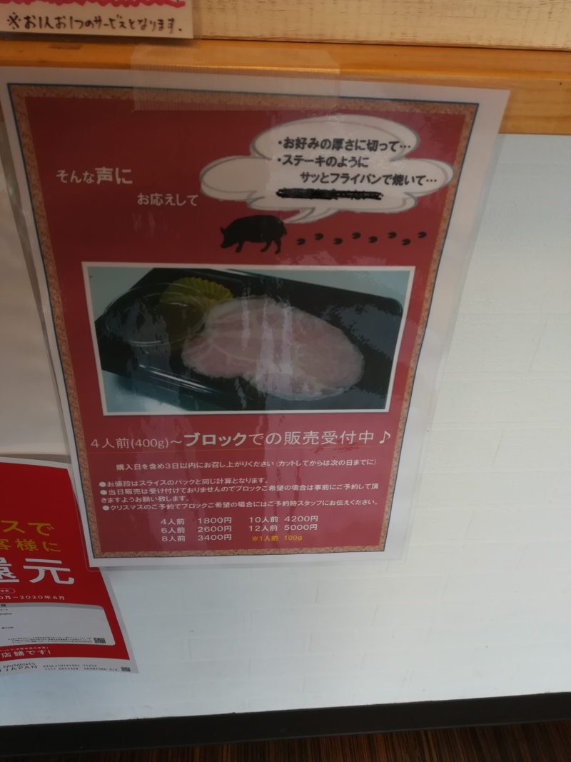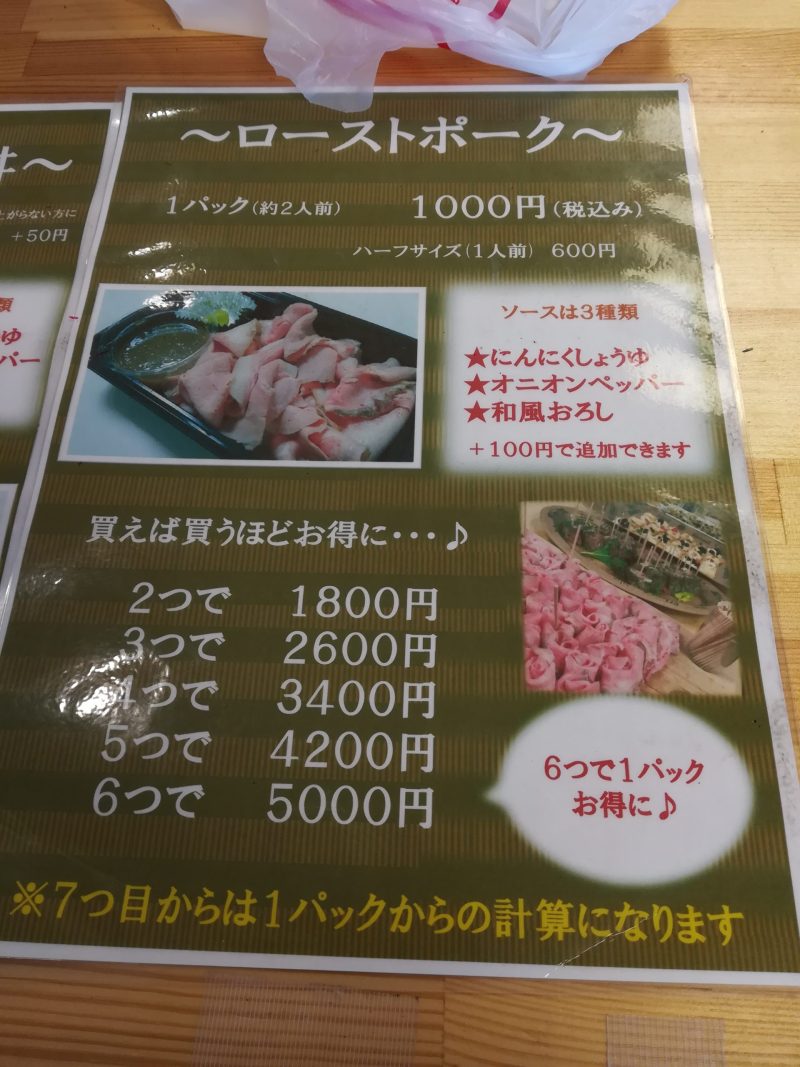 ご飯がないローストポークだけ。1人前100g600円。