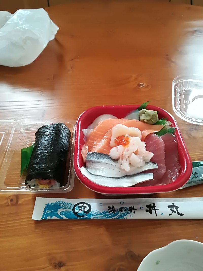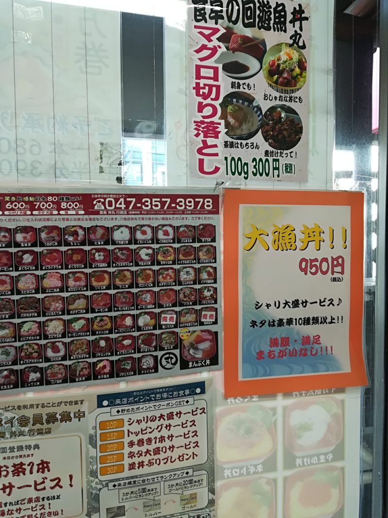 向かいに回転ずしのはま寿司があるので、外でさくっと食べたいときは回転すし、家でお酒を飲みながらどんぶりを食べたいときは丼丸にしています