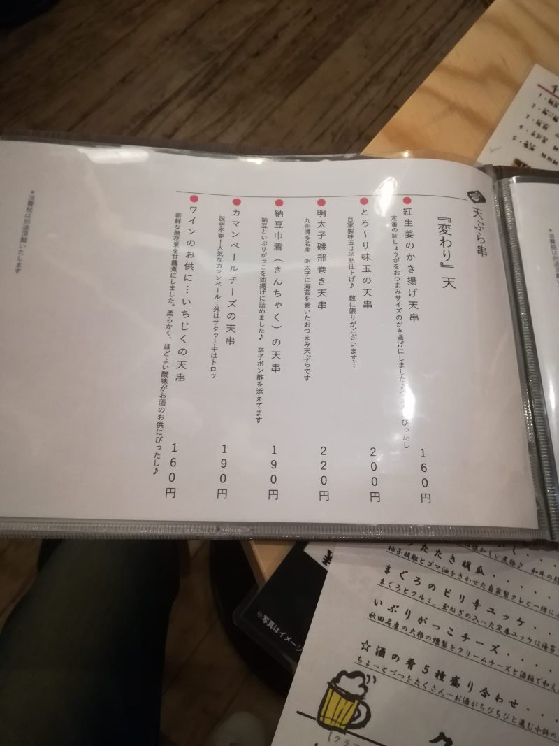 天ぷらが中心のお店とうわさでは聞いていたので、今日は天ぷらを食べる気満々できたので、こんなにそれ以外のメニューがあるとは思いませんでした