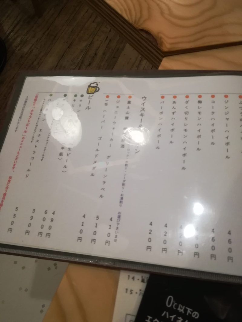 初めてのお店なのでメニューも写真に撮っておきます