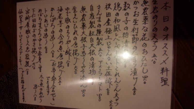 この中から「数の子粕漬け」「下仁田ネギかき揚げ」を注文しました