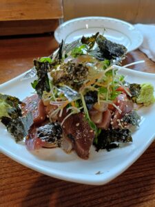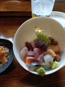 漬物とかチーズが来るかとおもいきやお刺身のヅケでした
