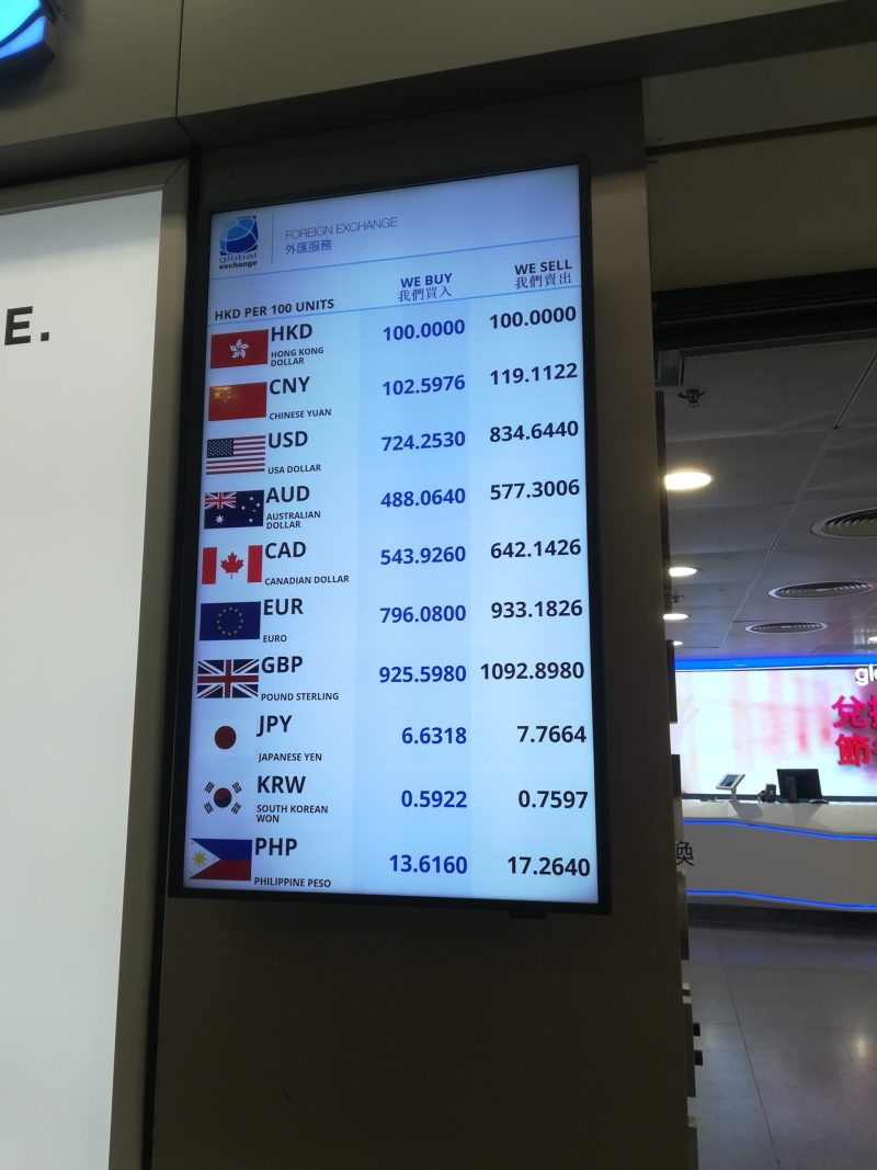 香港に到着したらまず両替。1万円。全部たべつくすぞーー