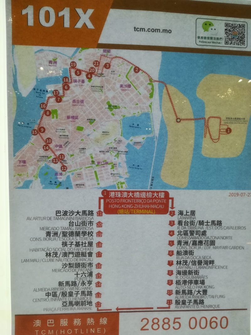 マカオのバス乗り場。ここまで香港空港からバスに乗り5分ほどです