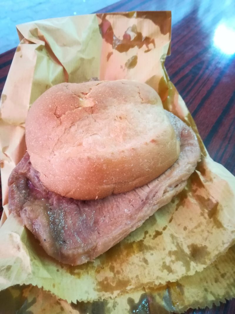 いやーー、まったく期待していなかったけどパンが旨いのなんのって。サクッとパリッとしていて味のついたお肉と合う