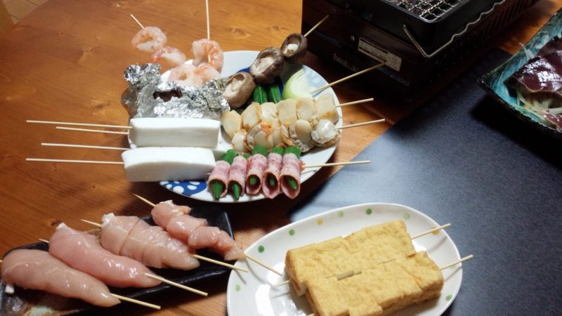 串にさしさしして、刺身も食べたかったのでかつおのたたきを買い、とっても豪勢な晩御飯になりました