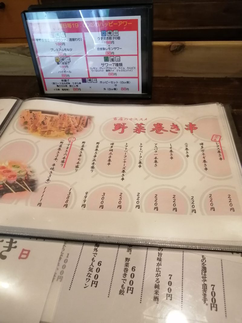炭火野菜巻き串と餃子 博多 うずまき 行徳店