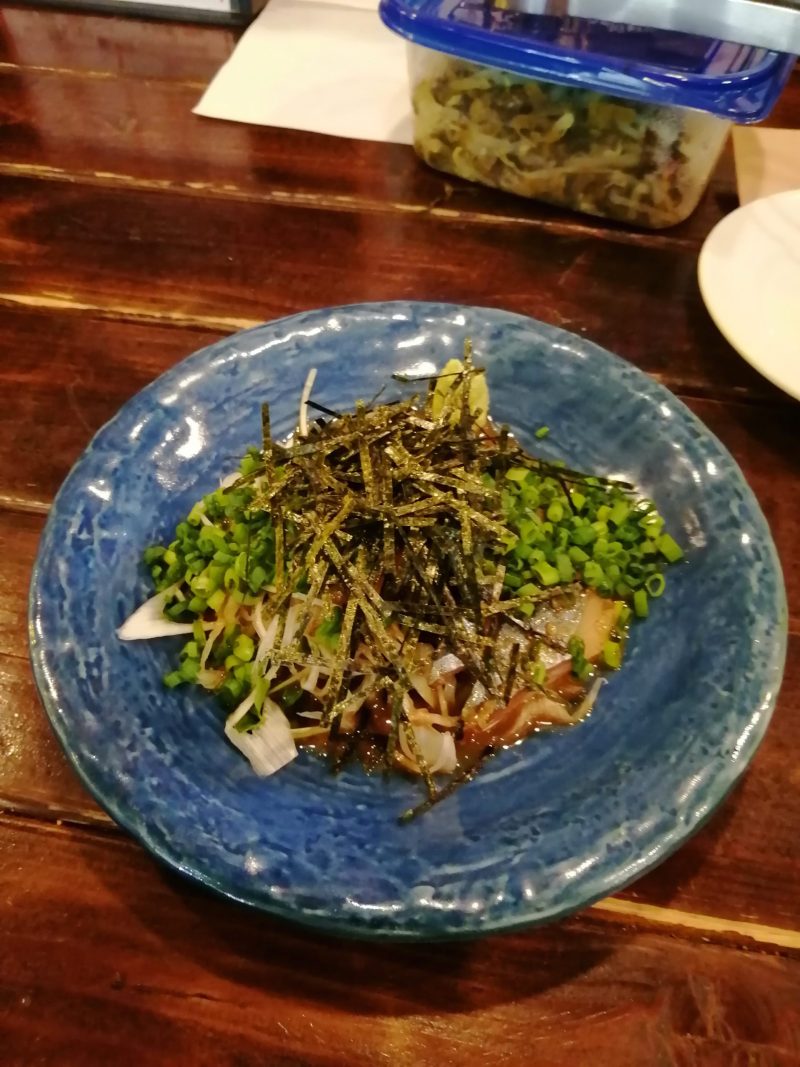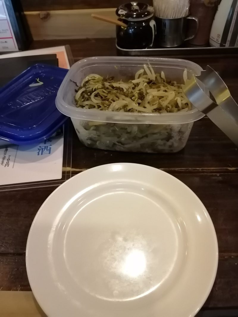 そしてお通し350円。またまた初めてのことですが、タッパーの中から好きなだけどうぞ、と