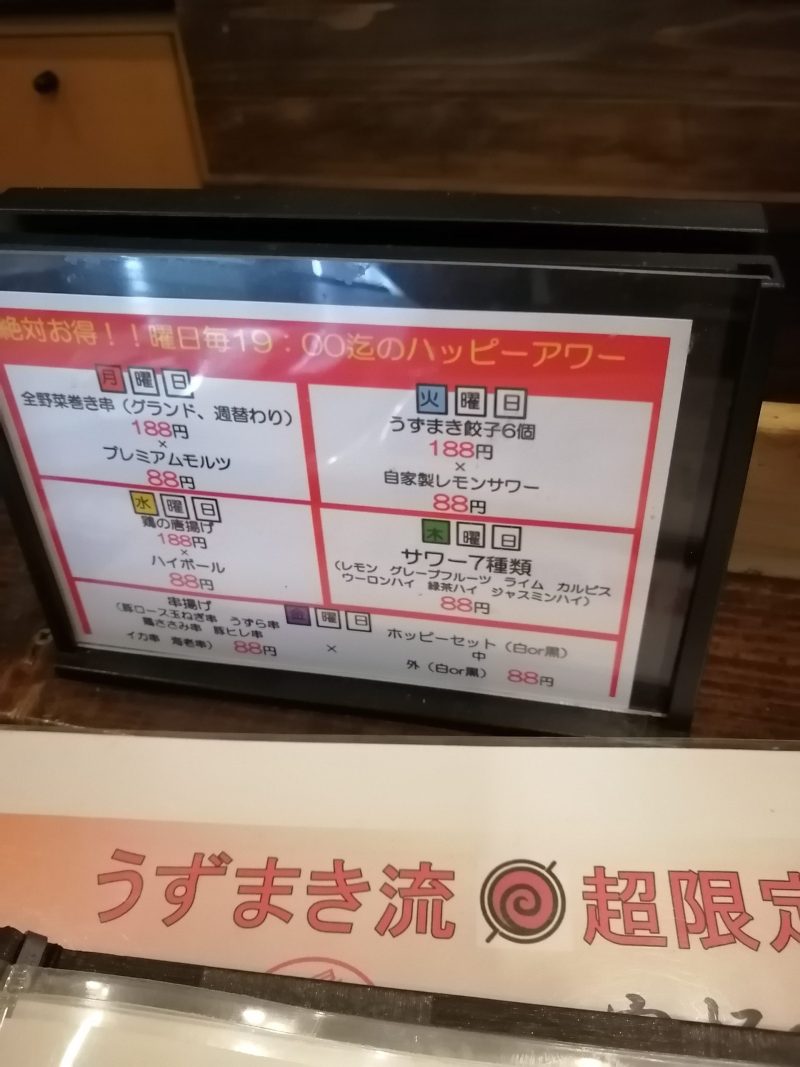 行った日は7日です。焼きしゃぶが安いみたいですね。そして8日はうずまきの日なんですね