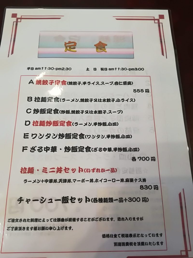 定食メニュー