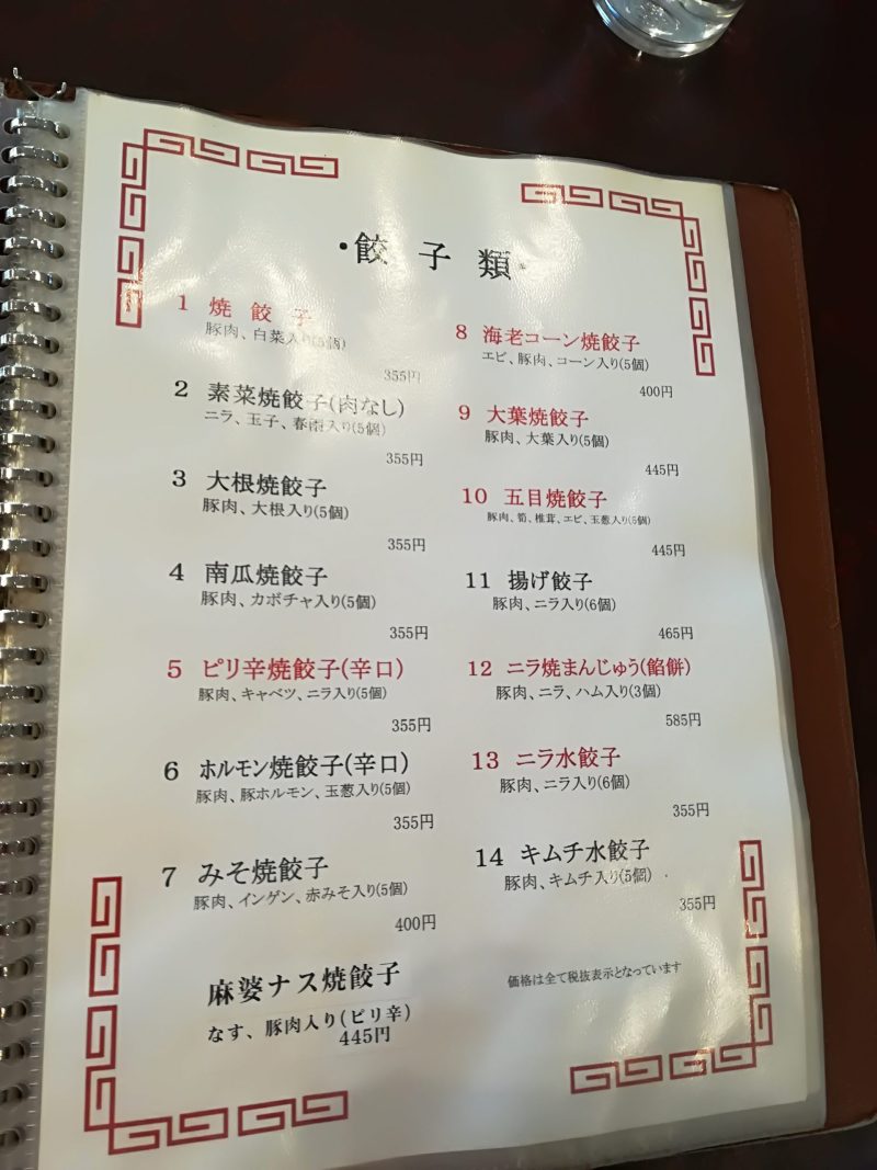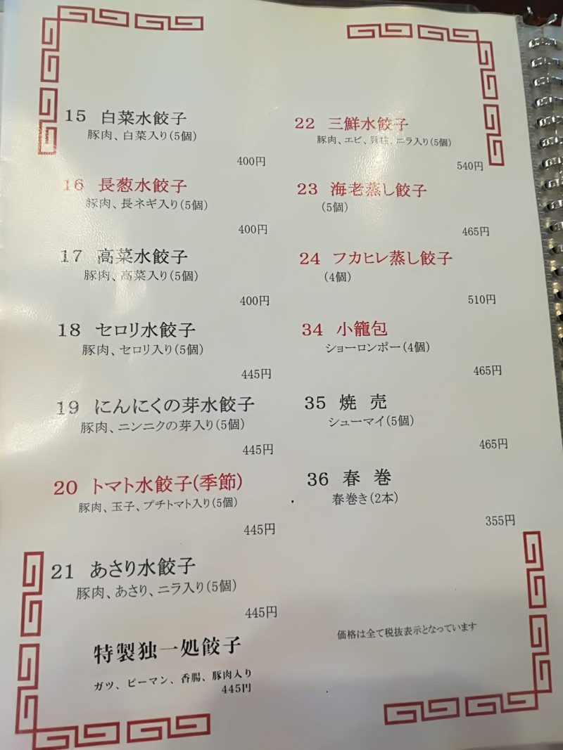餃子だけで2ページあります!水餃子もたくさんありますね、さすが餃子屋さんですね