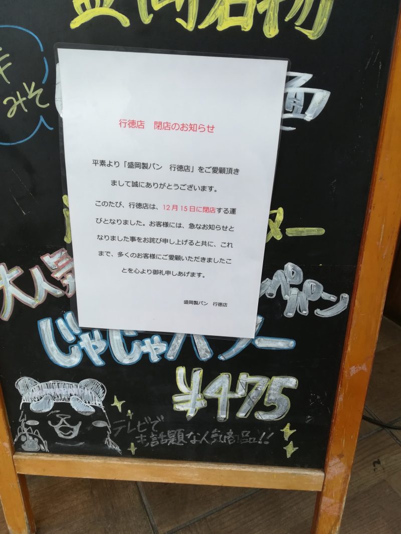 盛岡製パン クローズ 12/15 2019年12月13日 最終更新日時 : 2019年12月13日 restyle-admin 2年ほど前でしょうか?当時は大行列でした 今週、閉店されるんですね あとには高級食パンが出来るようです 同じ会社が経営しているのかな? いいですね、流行りを追いかけているお店なんですね なくなるのは寂しいけど、新しいお店に期待します!