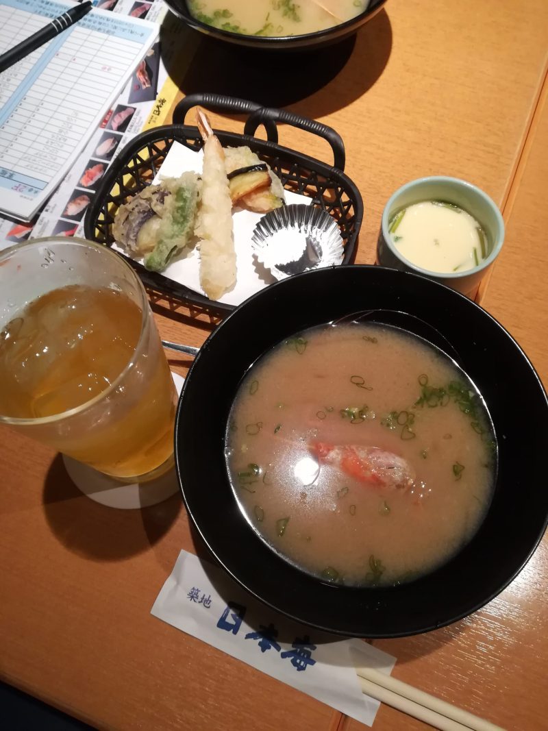 最初、天ぷら、味噌汁、茶わん蒸しがきます。これは食べきらなくてもいいそうです。