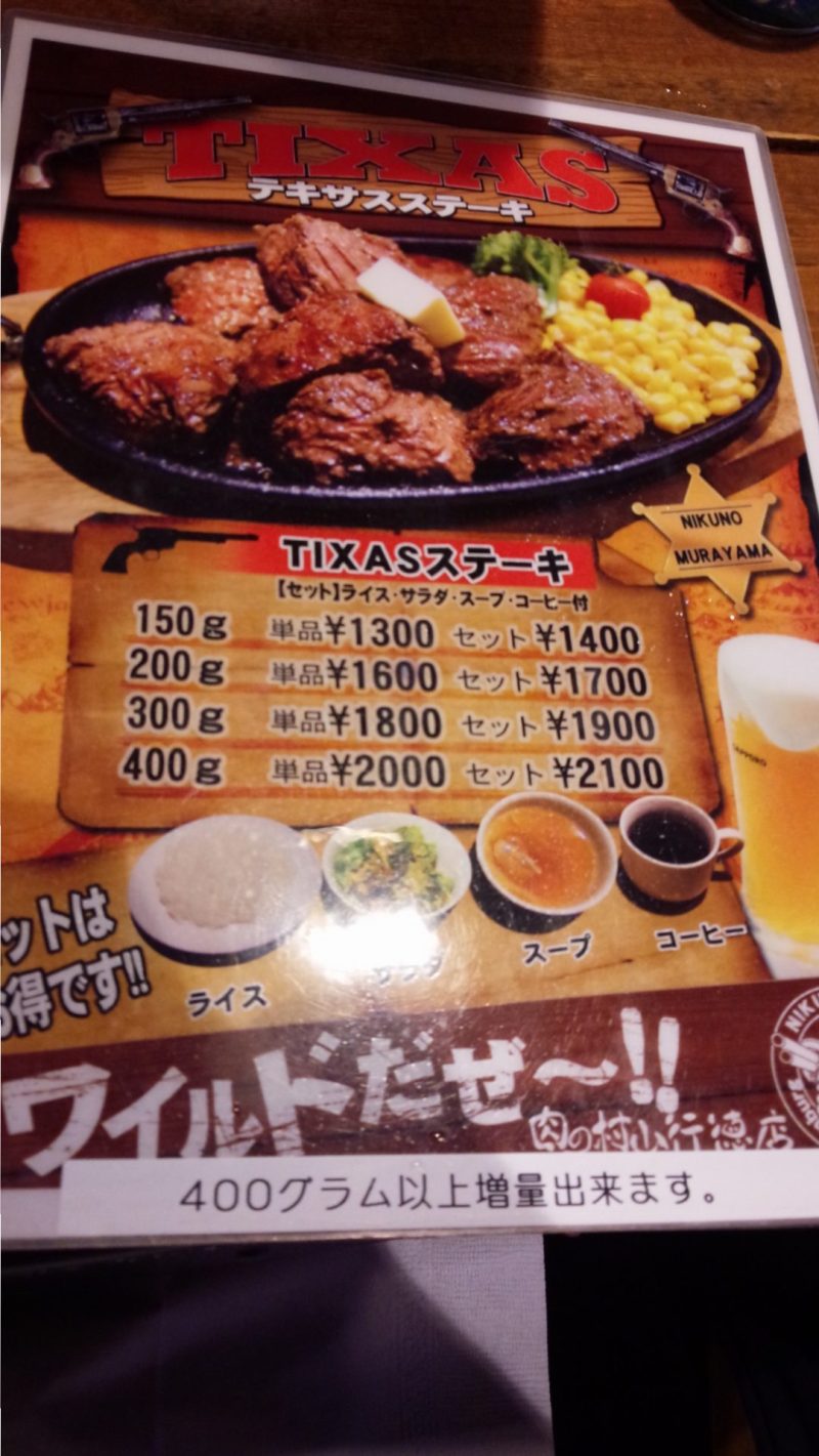頼むのはテキサスステーキ 400gです