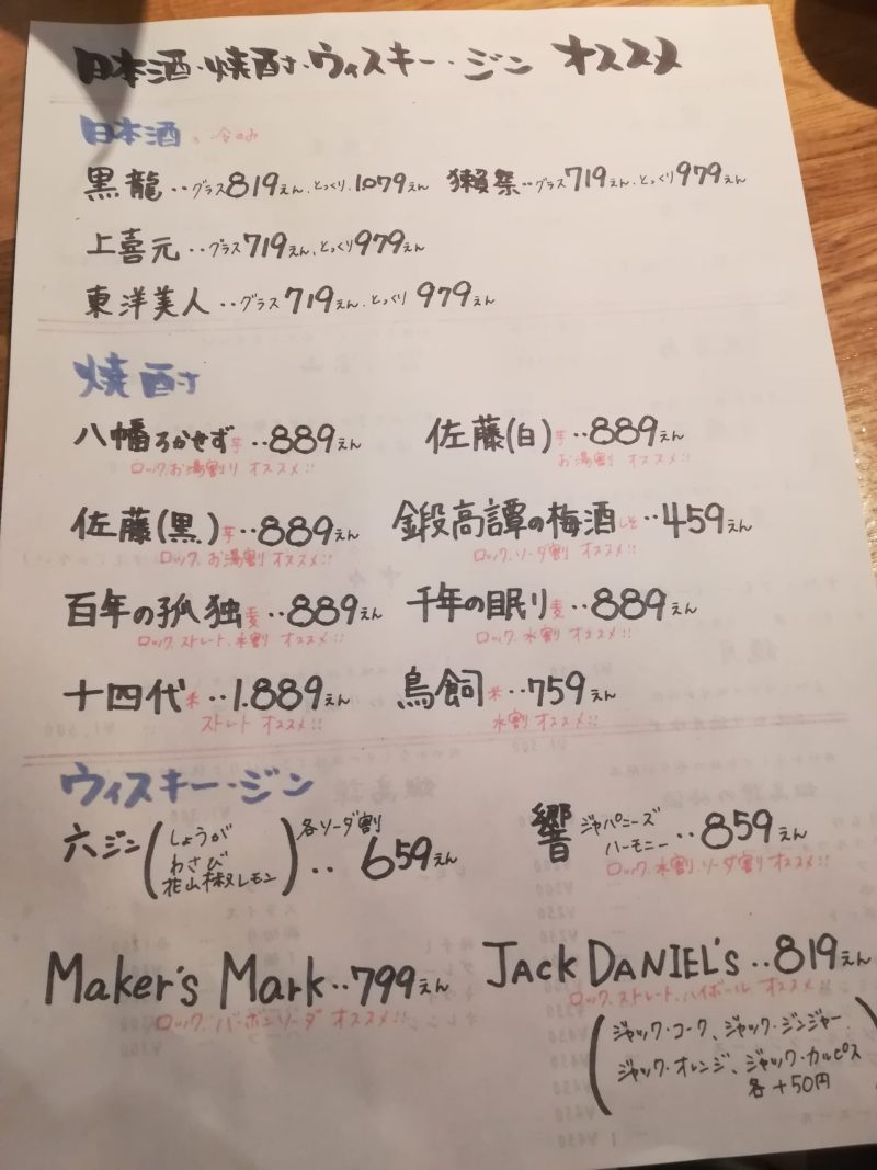 色々なお酒、お料理がありますね