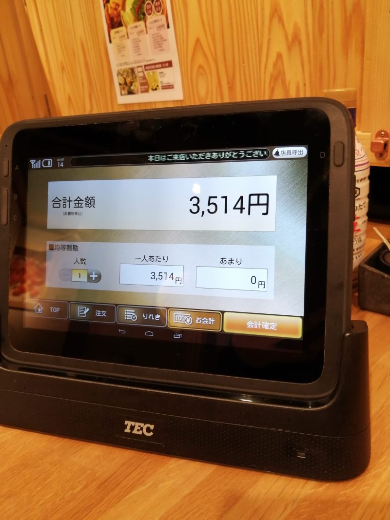 タブレットですね。焼肉安安と同じ感じで、使いやすいタブレットです。