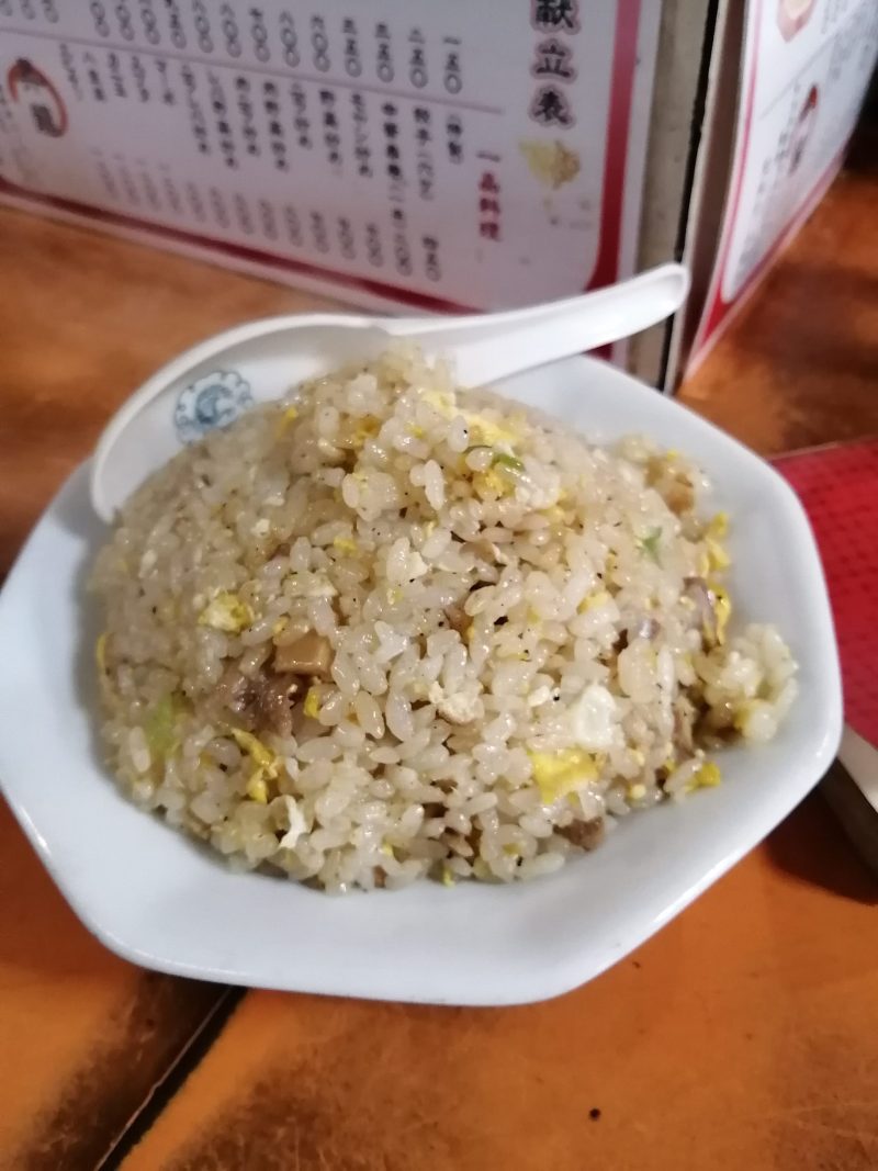 半チャーハンはしっとり系。コショウが聞いていて、お肉もゴロゴロ入っていておいしいです