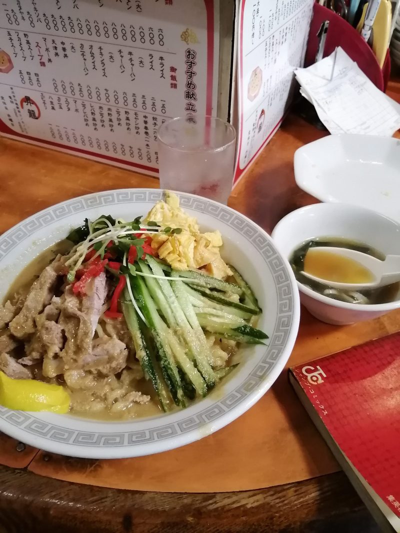お肉がしっとりしていて濃いめのゴマダレの味付けでおいしい!ワカメにも味が染みる~紅ショウガもあまりみかけませんが、いい味出してます