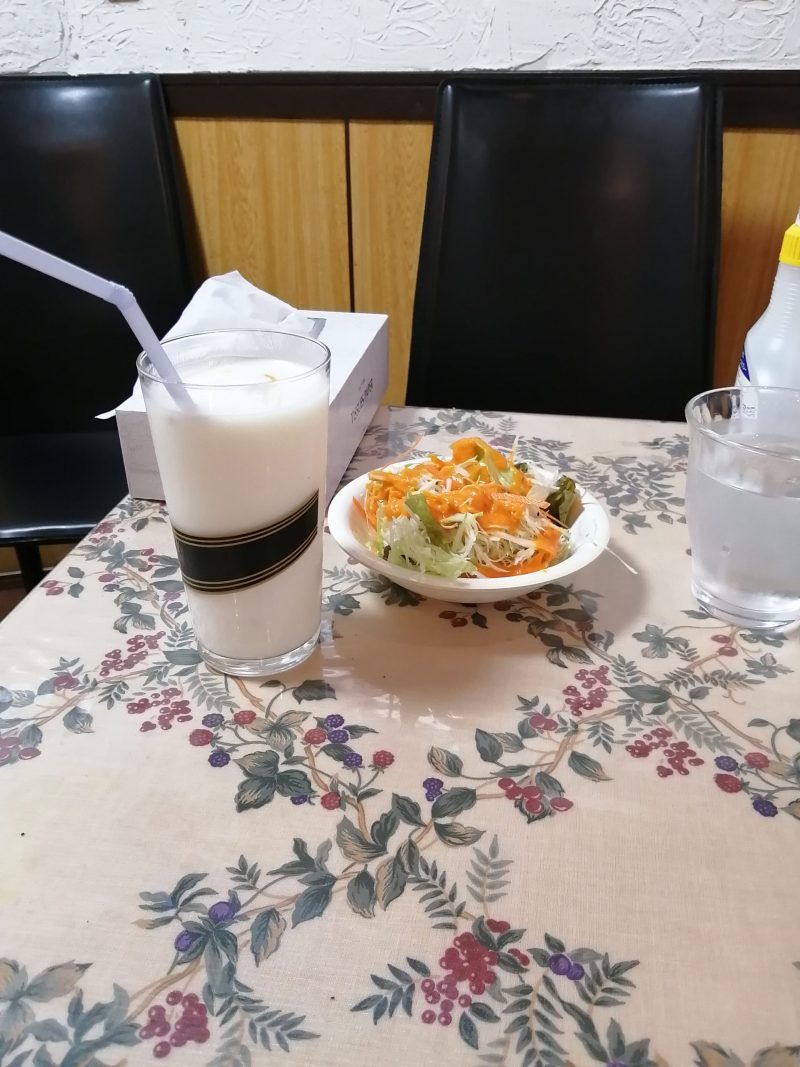 ん?ドレッシングがよくあるカレー屋さんの甘いオレンジ色のドレッシングとは違う!ちょっとニンニク風味でパンチがきいています