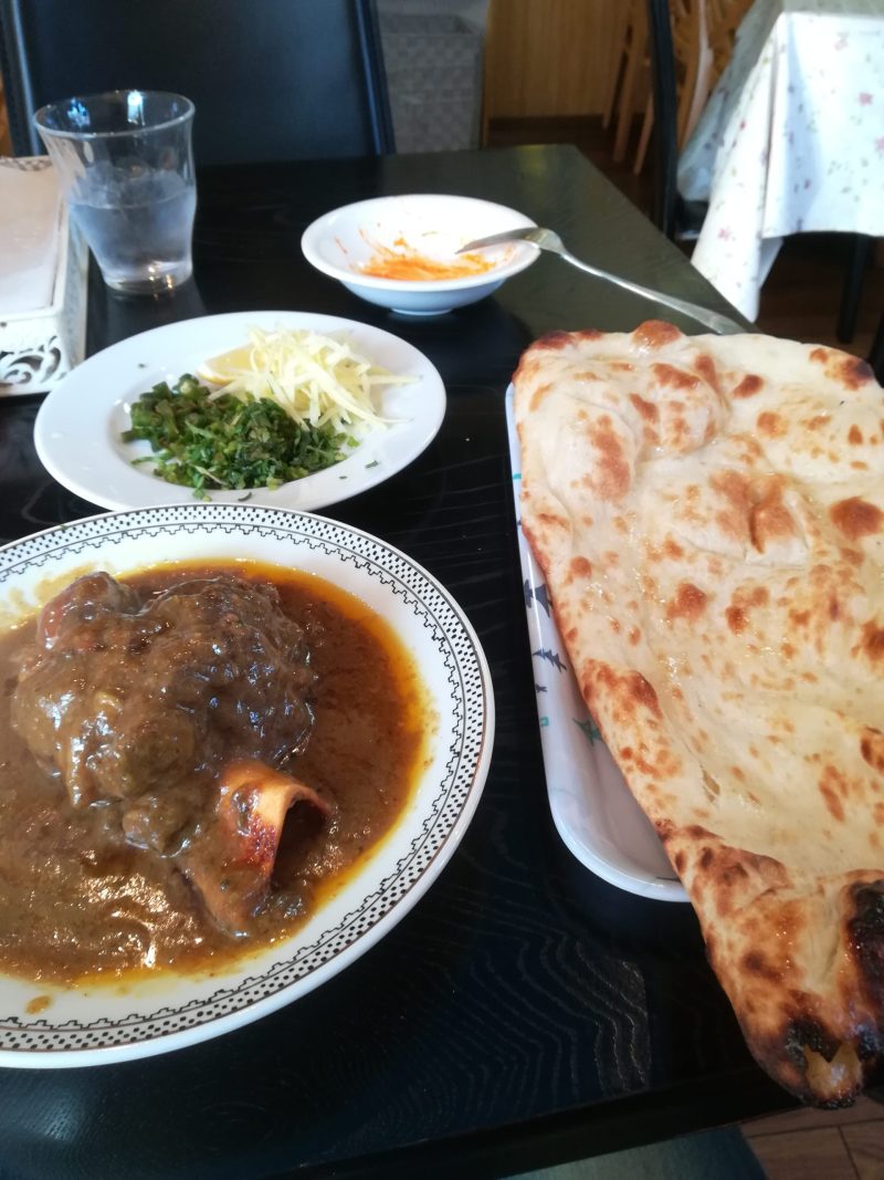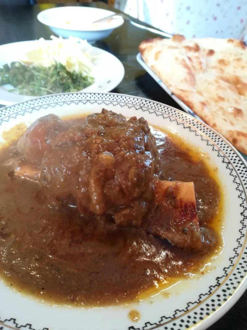 この骨付きマトンが8時間煮込まれているらしく、骨からスルッとはずれて