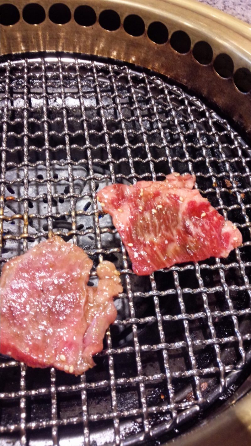 トングが来ないな~お箸で焼いちゃおっと。私はおおざっぱなので気にしなかったのですが、隣の2人組もやはりトングがなかったようで、トングくださーいと言っていました。私にだけ出し忘れたのかと思いましたが、隣にもないとは。ランチは基本的に出さないのかな?でも生肉は食べるお箸でつかむのはちょっと危険なんですよね~
